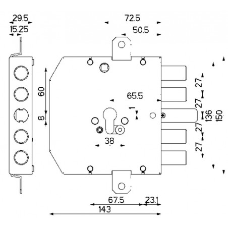 entrata chiave 65.5 mm, entrata maniglia 72.5 mm + 33 mm,