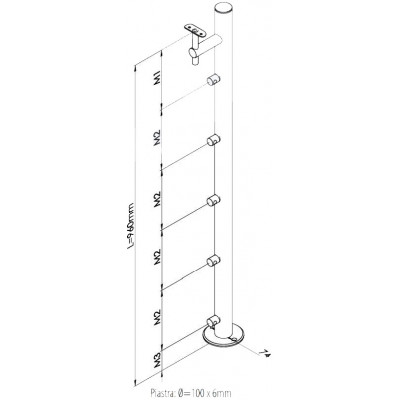 Con fori fresati e piastra di ancoraggio a pavimento per ringhiera rettilinea