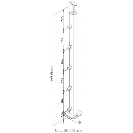 Profilo a sezione quadrata satinato con piastra di ancoraggio laterale