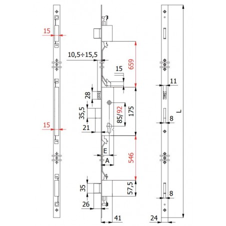 FUNZIONAMENTO: Catenacci comandati dalla chiave - Scrocco comandato dalla chiave o dalla maniglia.