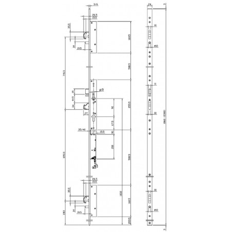 Con microswitch in grado di rilevare lo stato dei catenacci. Serratura centrale, interasse mm 92, cilindro a profilo europeo.